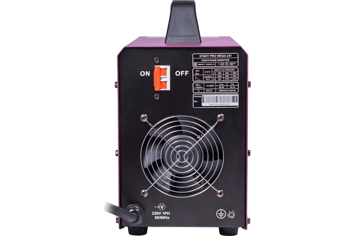Максимальный сварочный ток — 250 А: обеспечивает качественную сварку на высоких токах, подходит для работы с электродами до 5 мм.
