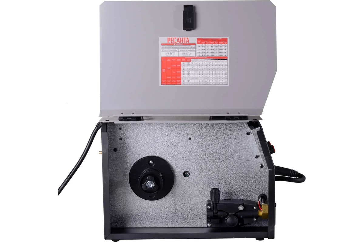 Однофазный полуавтомат отличается простотой использования. Автоматическая подача проволоки повысит производительность, так как не требуется перерыв на замену электрода, обеспечит аккуратность швов. Возможность прогона проволоки на холостом ходу позволяет моментально очистить сопло горелки. Модель обеспечивает быструю и качественную сварку заготовок методом MIG/MAG, пригодным для сред из инертных и активных газов, или MMA (ручная дуговая сварка штучными электродами). Удобной опцией является возможность проведения сварки без применения газа с применением порошковой проволоки.