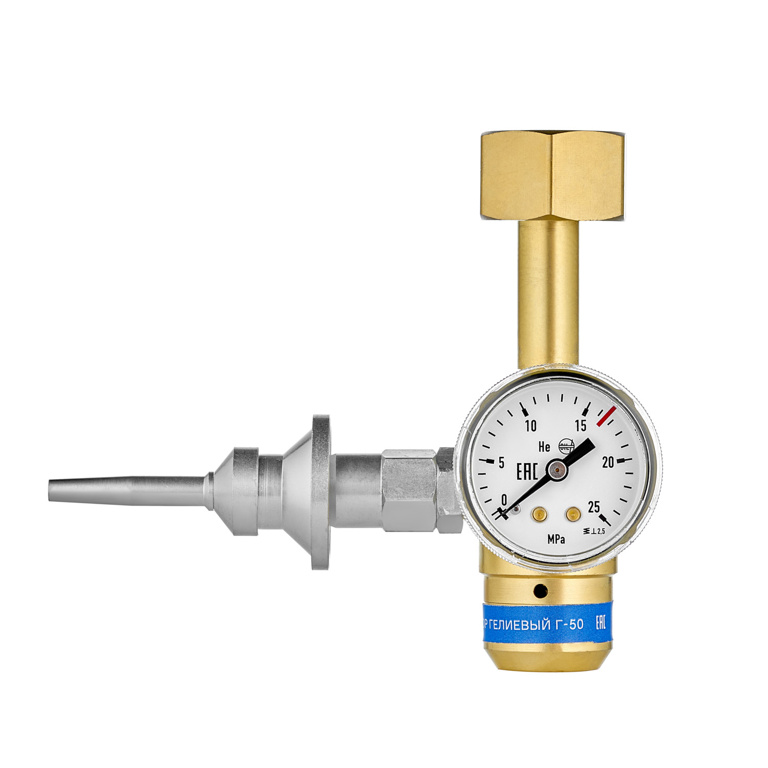 Г-50 имеет нерегулируемое постоянно заданное давление на выходе 0,36±0,06 МПа. Предназначен для работы с гелием в интервале температур от -5 до +50°С.