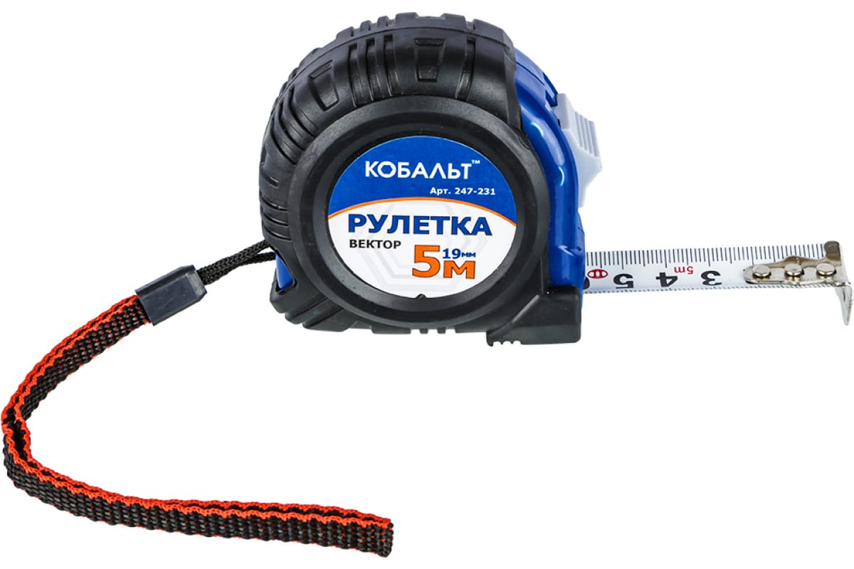 Рулетка 5 м x 19 мм, обрезиненный корпус КОБАЛЬТ Вектор 247-231 используется для снятия размеров и производства разметки во время строительных, интерьерных, монтажных работ. Матовое покрытие ленты и крупные контрастные значения цифр обеспечивают легкость считывания даже при слабом освещении. Корпус инструмента выполнен из ABS пластика, что гарантирует устойчивость к механическим воздействиям. Благодаря жесткой стальной клипсе и прочному ремешку-темляку возможно ношение изделия на ремне или запястье.