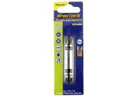 Бита Профи 035-776 двусторонняя PH-2/PZ-2 60мм ПРАКТИКА 2 шт Очень удобна в использовании: один конец имеет размер PH-2, а другой PZ-2. можно использовать как в быту, так и при решении профессиональных задач. В комплект входит пара двусторонних 60-миллиметровых бит традиционного конструктивного исполнения. Биты изготовлены из высококачественной стали S2. Инструменты обладают высокой стойкостью к усталостным и ударным нагрузкам. Набор рассчитан на длительное использование. Дополнительным преимуществом является то, что биты имеют магнитные свойства.