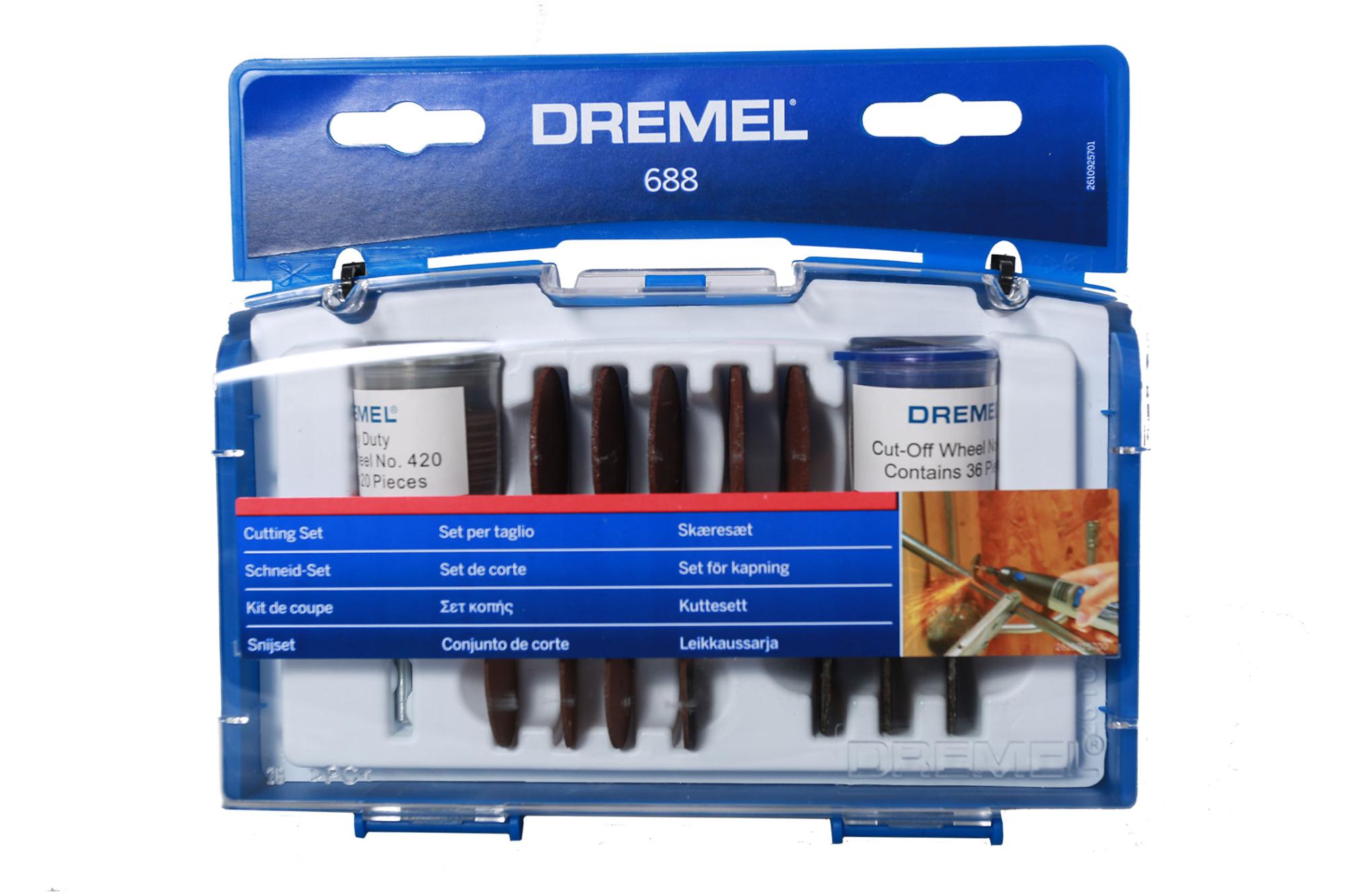 Набор оснастки для резки Dremel содержит насадки для резки металла, древесины или пластмассы с помощью гравера. Приспособления легко срезают болты, винты, а также прорезают канавки в различных деталях. Поставляется в чемоданчике, удобном для хранения и транспортировки.