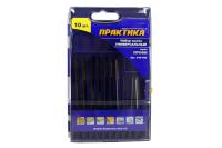 Комплект ПРАКТИКА включает в себя десять пилок, среди которых распределено семь назначений. Модели T101B, T144D и T101D позволяют осуществить соответственно чистый, грубый и быстрый рез по дереву и древесно-стружечным плитам. Полотна T218A и T118A соответственно разработаны для криволинейного чистого реза и чистого реза по стали в листах и алюминиевому профилю. Пилка T101AO справится с криволинейным чистым резом древесины, пластмассы, ламината и древесно-стружечных плит. T127D осуществит быстрый рез профиля.