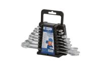 Набор рожковых ключей, предназначенный для слесарно-монтажных работ. Они обладают прочной конструкцией, изготовленной из высококачественной хром-ванадиевой стали Cr-V, что обеспечивает длительный срок эксплуатации изделий. В комплект с инструментами поставляется пластиковый подвес для удобного хранения. Количество предметов 8 шт