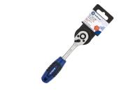 Трещоточная рукоятка 145 мм с храповиком на 72 зуба, позволяет развивать высокий крутящий момент работе с минимальным углом поворота 5 град. Идеальна для труднодоступных мест. Для головок с квадратом 1/4''. Флажковый переключатель реверса с фиксацией. Жесткое запирание головки на шпинделе шариком исключает возможность случайного выпадения головки в процессе работы. Обрезиненая рукоятка повышает удобство и комфортность работы.